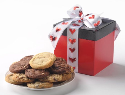 A great gift with 32 scrumptious cookies packaged in a red box with a black lid accented with elegant heart ribbon. Ideal for Valentine's Day, Anniversary or just because to that special someone. Choose from one of our delicious cookies assortments.