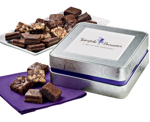 This memorable gift includes a tantalizing taste of bite-size Magic Morsels. Six delicious flavors come tucked inside our sophisticated, silver and purple keepsake tin. All-natural Fairytale Brownies, Bars and Cookies are free of trans fats, hydrogenated oils, preservatives and artificial colors. Our treats are guaranteed fresh upon arrival, and care instructions are included in every gift box. If not indulging within one week, freezing is recommended. Fairytale Brownies, Sprites, Magic Morsels, Cookies and Bars are individually wrapped, and thawing takes less than one hour at room temperature.
