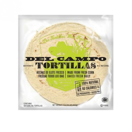Del Campo Tortillas manufactures authentic Mexican style soft corn tortillas. The tortillas are 100% natural. Made with water and corn meal. There are no preservatives and they are gluten free. There are 16 tortillas per lb and 8 lbs per case. Del Campo Tortillas last for one week in the refrigerator. Just refrigerate as soon as you receive your tortillas. For serving suggestions you may visit our website at www.delcampotortillas.com