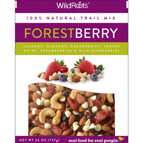 WildRoots® 100% natural trail mix gives you the energy needed to get out there and experience living at its best. Whether it's hiking in the mountains or climbing the corporate ladder, you need a snack that can keep you fueled. Our mix starts with whole roasted almonds and cashews for crunch, with just a hint of salt added. Then we blend in creamy yogurt chips, sweet cranberries, wild blueberries and dried strawberries for the perfect blend of sweet and salty. The result is a deliciously simple snack that feeds your craving without all the empty fillers or preservatives you get in other products. Our philosophy is: If you can't pronounce it, you shouldn't eat it.Our Forest Berry Trail Mix is a 100% natural, deliciously simple snack that feeds your craving without all the empty fillers or preservatives!