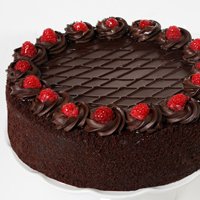 This moist dark chocolate cake is flavored with Raspberry Chambord liquor, filled and covered with Chambord Chocolate Ganache, and decorated with Raspberries. A truly delicious, and elegant dessert.
