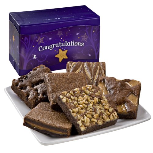 Show your thoughtfulness with the six most popular flavors of Fairytale Brownies. Comes hand packed in our elegant purple treasure box and wrapped in a Congratulations band. All-natural Fairytale Brownies, Bars and Cookies are free of trans fats, hydrogenated oils, preservatives and artificial colors. Our treats are guaranteed fresh upon arrival, and care instructions are included in every gift box. If not indulging within one week, freezing is recommended. Fairytale Brownies, Sprites, Magic Morsels, Cookies and Bars are individually wrapped, and thawing takes less than one hour at room temperature.Read more Fairytale Brownies Congratulations Half-Dozen