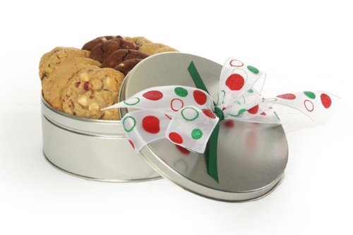 Our silver tin is highlighted with red and green glitter dot ribbon and filled with 12 scrumptious cookies.Read more Glitter Dots 12 Count Gourmet Cookie Tin Gift