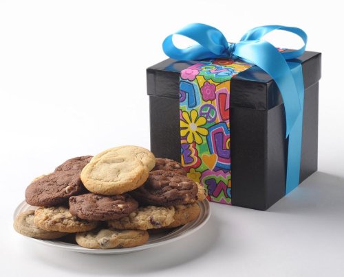 A great gift with 32 scrumptious cookies packaged in a black box accented with colorful fun groovy love ribbon. Ideal for Valentine's Day, Anniversary or just because to that special someone. Choose from one of our delicious cookies assortments.
