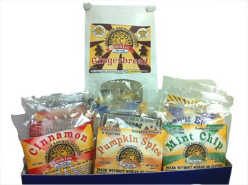 A large holiday gift basket bursting with dense, soft and chewy gluten free cookies in ONE DOZEN awesome flavors: Gingerbread, Pumpkin Spice, Mint Chip, Cinnamon, Fudge Brownie, Chocolate Chip, Peanut Butter, German Chocolate, Banana Nut, Mocha Java and NOatmeal Spice. Also included: One bag of mini gingerbread cookies, YUM!
