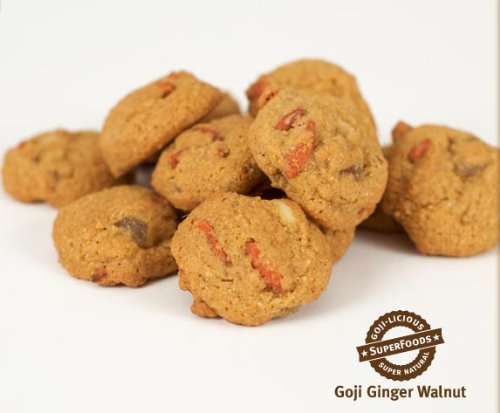 Includes four (4) large bags of goji berry cookies. Each large bag includes 16 cookies (total of 64 cookies/order). Goji Gourmet cookies are soft, chewy, delicious and 100% natural. Specific cookie flavors are also packed with superfoods such as almond, cacao, cherries, ginger, oats, oranges, turmeric, walnuts, and whole wheat. Goji Gourmet cookies are made with organic goji berries (which have 10x more antioxidants than blueberries) and use antioxidant-rich buckwheat honey in place of refined sugar but remain low calorie (25 calories each) and low carb.Read more Goji Berry Cookies: Goji Ginger Walnut (4 bags, 64 cookies total)