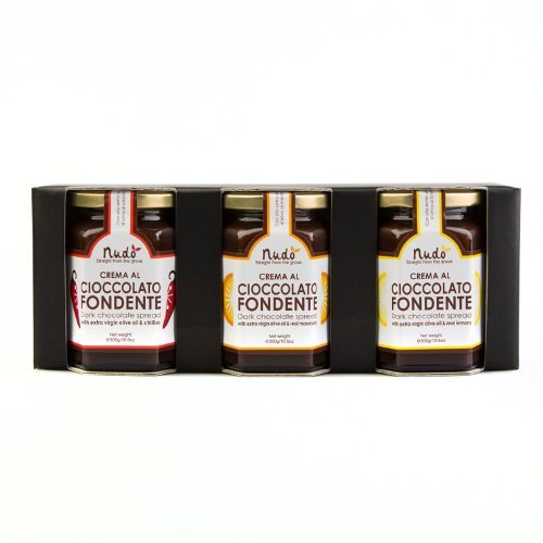 These dark and delicious spreads, which all boast 30% dark cocoa, are made with Nudo extra virgin olive oils. Enjoy the fiery kick of our chilli oil, the fragrant sweetness of our mandarin and the fresh zing of our lemon oil - all in delicious partnership with sumptuous chocolate.Read more Trio of Chocolate Crema Gift Box